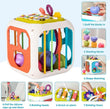 ? 7 in 1 Montessori Toys - This multifunction sensory activity cube combines 7 different activities in 1, 7 different ways to learn and play: sensory box, shape sorter, pull strings, musical xylophone, bead maze, spinning gears, sorting stacking blocks. The multi-play center is a great Montessori toys for 6 to 12 18 months baby to keep busy and develop toddlers gross motor skill, hand-eye coordination, sensory exploration, shape & color cognition and grasping ability.